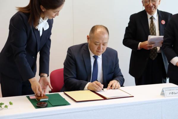 署名するバダムハタン所長