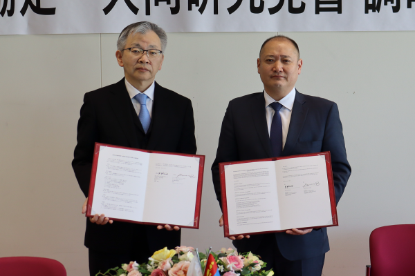 続いてバダムハタン所長が「岡山理科大学との協力関係はモンゴルにおける恐竜研究の発展に非常に寄与している。今回の調印が新たな発展につながることを祈っている」と述べ、平野学長は「再締結によって共同学術研究が今後も継続される。未知の恐竜化石の発見や岡山理大の特色を生かした分析で、世界最先端となる研究成果の創出につながってほしい」と強い期待感を表明しました。