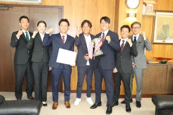 硬式野球部が38年ぶりの1部復帰を理事長に報告