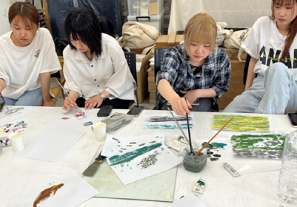 壁画に描く素材を検討する学生たち(芸術学部・五十嵐英之研究室提供)